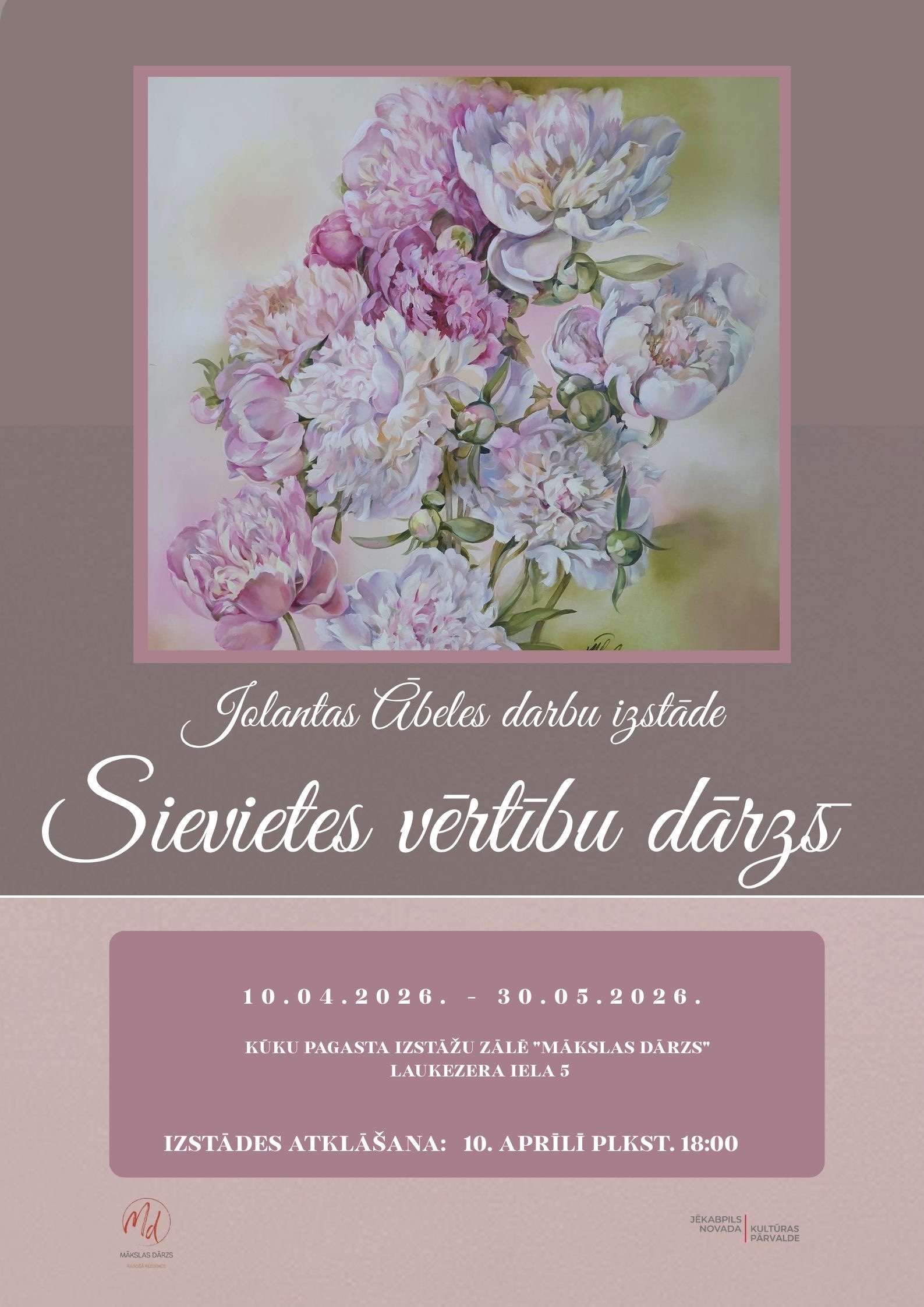 10.04.-30.05. Jolantas Ābeles darbu izstāde “Sievietes vērtību dārzs”