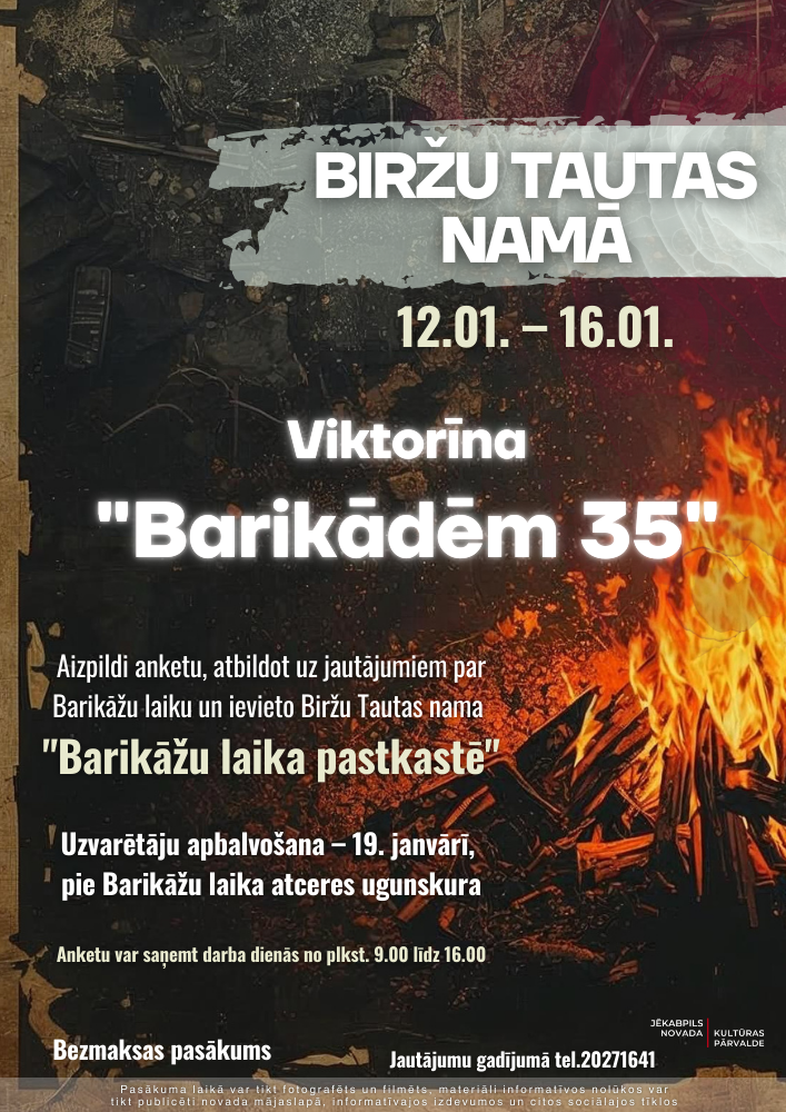 Līdz 16.01. Biržu Tautas namā Viktorīna “Barikādēm – 35”