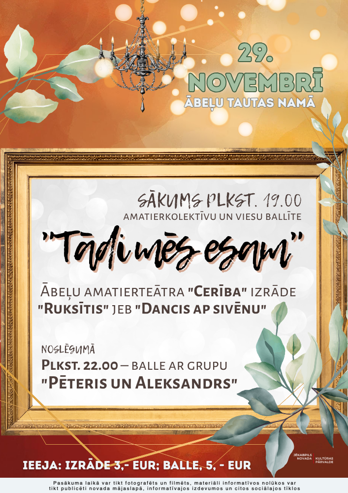 29.11 plkst. 19.00 Amatierkolektīvu un viesu ballīte “Tādi mēs Esam” – Ābeļu amtierteātra “Cerība” izrāde “Ruksītis” jeb “Dancis ap sivēnu”