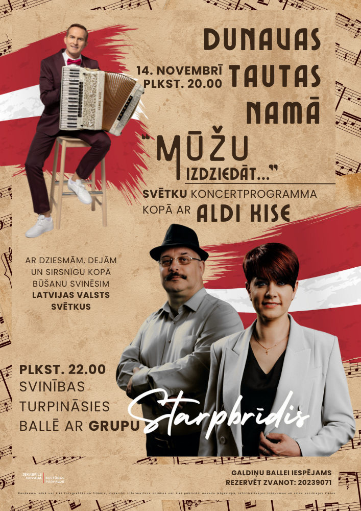 14.11. plkst. 20.00 Dunavas Tautas namā – Aldis Kise koncertprogrammā “Mūžu izdziedāt….”.