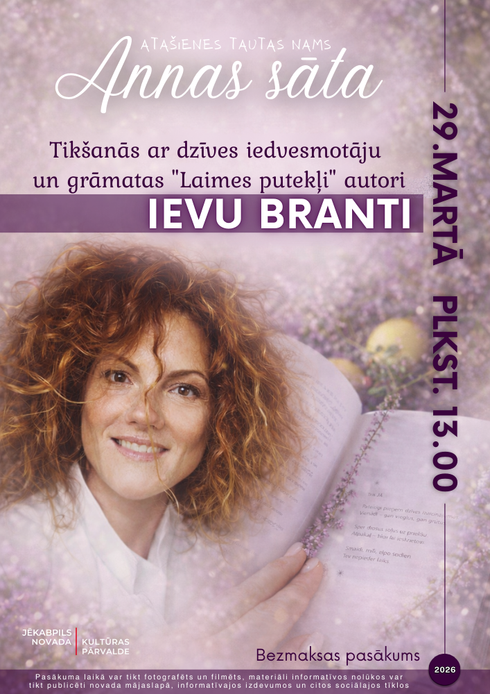 29. martā 13.00 Atašienes Tautas namā “Annas sāta” tikšanās ar autori Ievu Branti