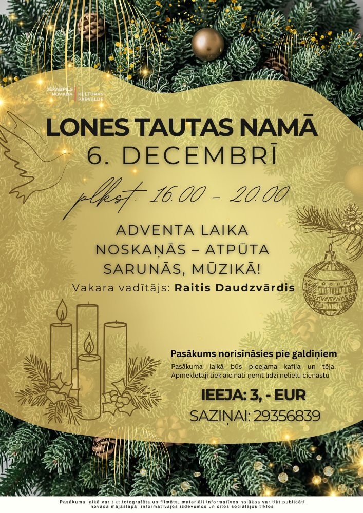 6.12. Lones Tautas namā no 16.00 līdz 20.00 jaunieša Raita Daudzvārda mūzikas vakars.