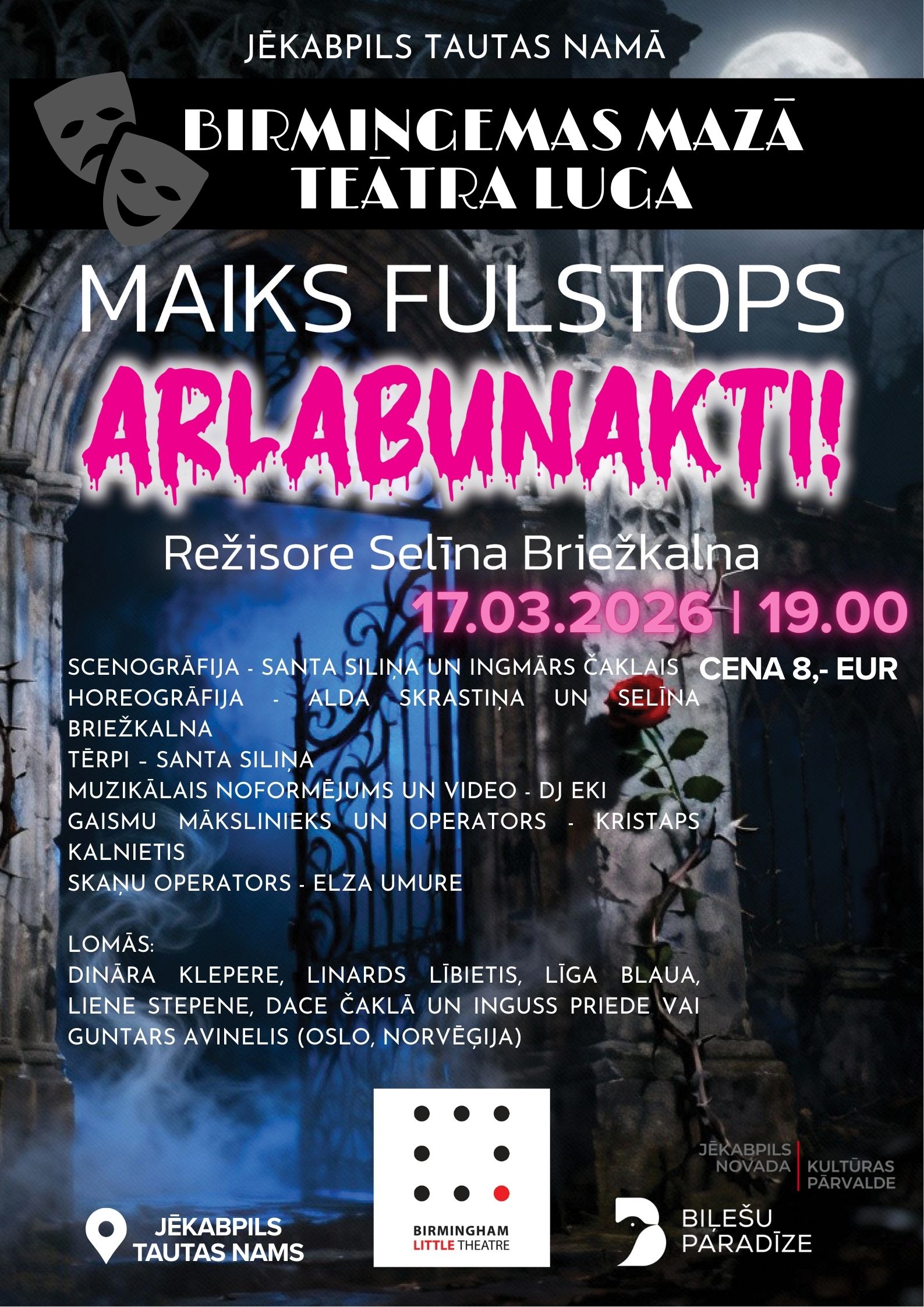 17. martā plkst. 19.00 Jēkabpils Tautas namā Birmingenas Mazais teātris- Maiks Fulstops “Arlabunakti!