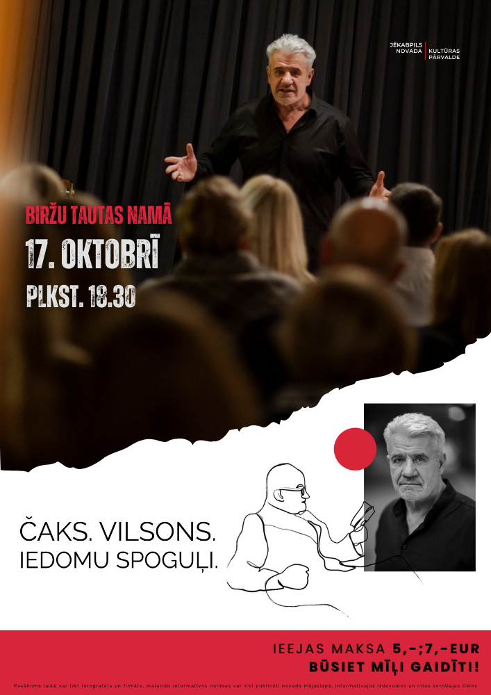 17.10. plkst. 18.30 Biržu Tautas namā “Čaks Vilsons. Iedomu spoguļi”.