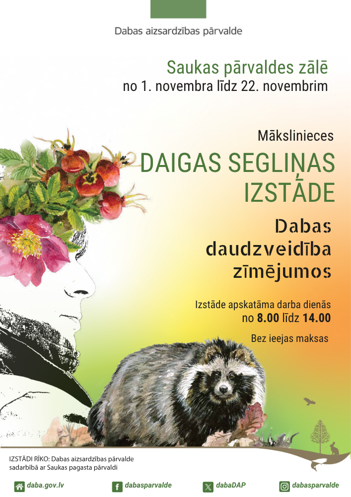 No 5. novembra līdz 1. decembrim darba dienās no 8.00 līdz 14.00 Saukas pagasta pārvaldes zālē skatāma Daigas Segliņas izstāde “Dabas daudzveidība zīmējumos”.