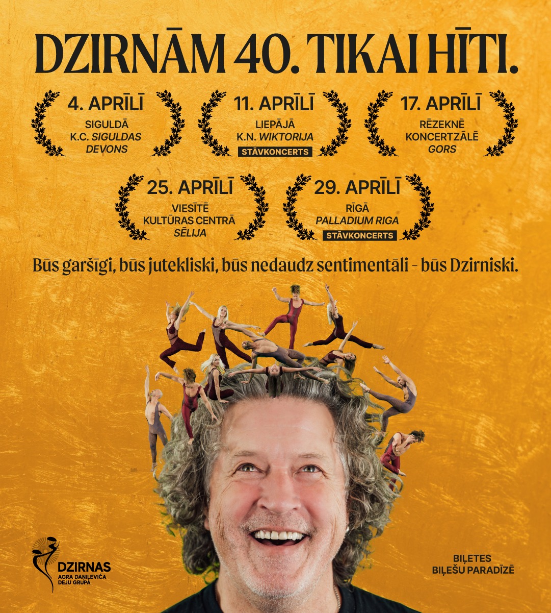 25. aprīlī plkst. 19.00 Viesītes Kultūras centrā “Sēlija” deju grupas DZIRNU jubilejas tūre – DZIRNĀM 40. TIKAI HITI