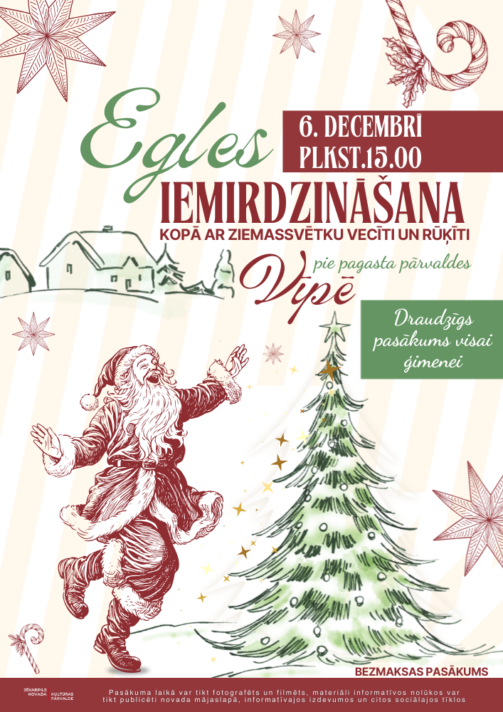 6. 12. plkst. 15.00 Vīpē pie pagasta ēkas Egles iemirdzināšana kopā ar salatēti un rūķīti.