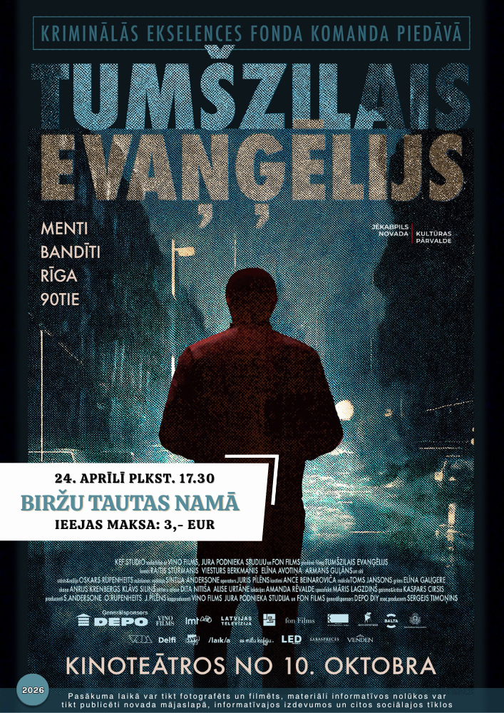 24. aprīlī plkst.17.30 Biržu Tautas namā Filma “Tumšzilais Evaņģēlijs”