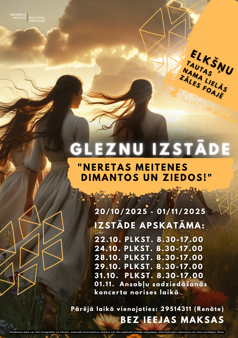 20.10 – 01.11. Elkšņu Tautas namā skatāma gleznu izstāde “Neretas meitenes dimantos un ziedos”.
