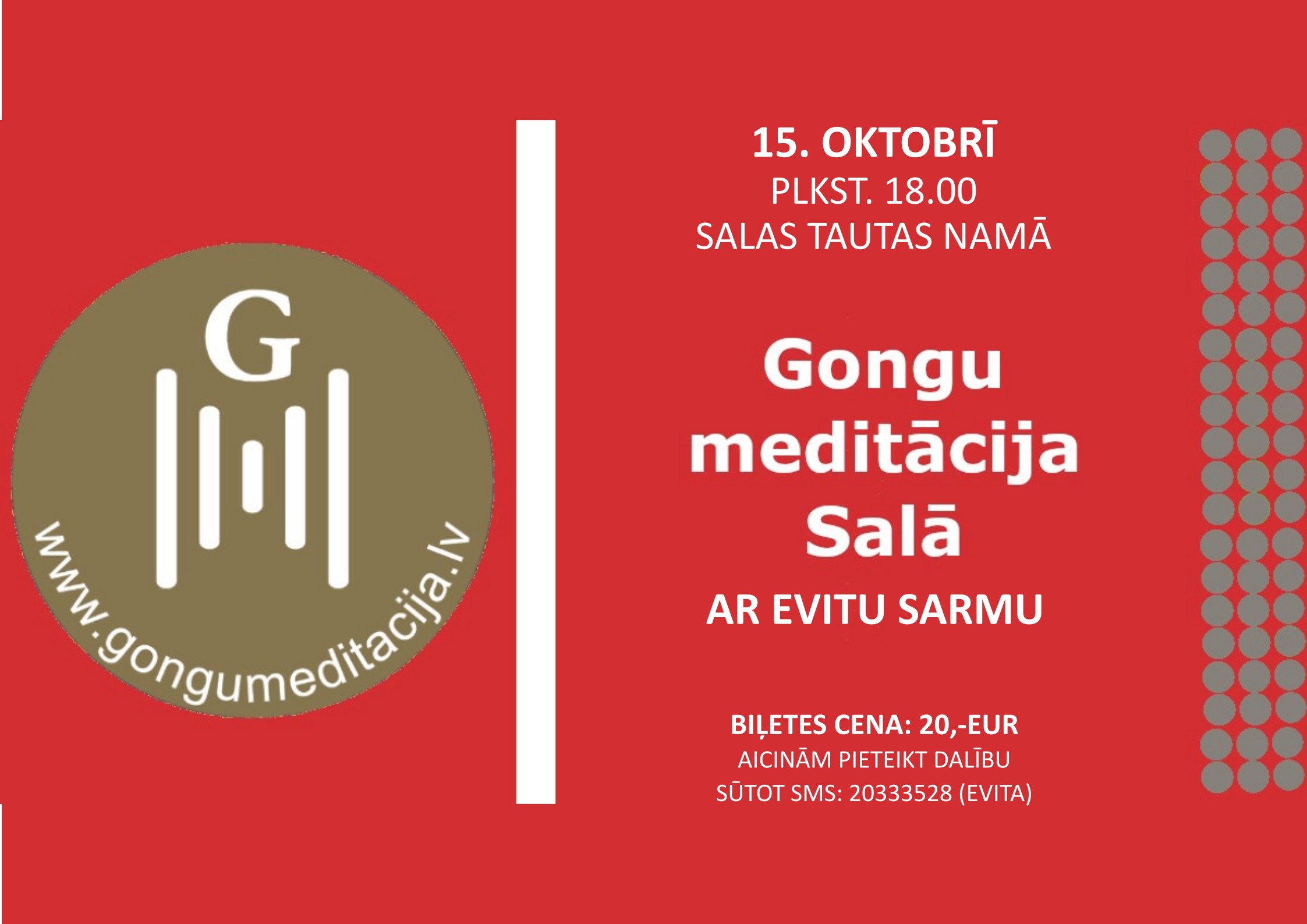 15.10. plkst. 18.00 Salas Tautas namā gongu meditācija ar Evitu Sarmu.