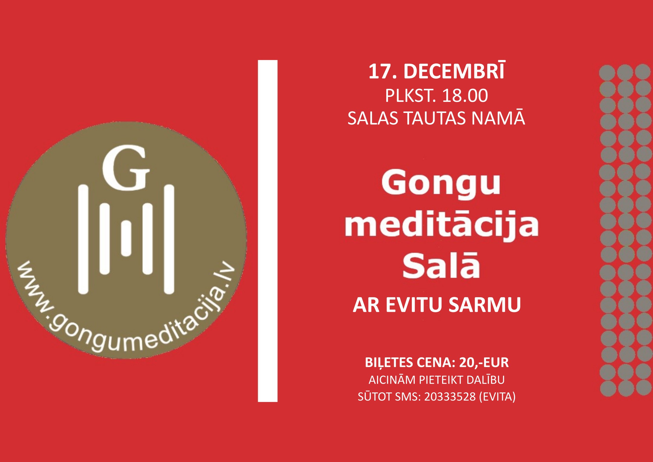 17. decembrī plkst. 18.00 Salas Tautas nama Kinozālē aicinām uz gongu meditāciju ar Evitu Sarmu.