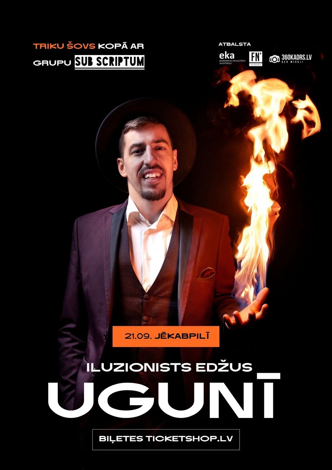 21. septembrī plkst. 18.00 Iluzionists Edžus ierodas Zīlānu brīvdabas estrādē “Mārdadzis” ar savu jauno triku šovu “Iluzionists Edžus UGUNĪ”.