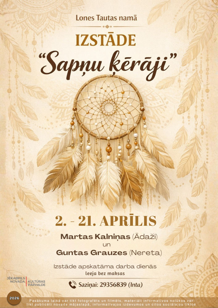2. – 21. aprīlim Lones Tautas namā izstāde “Sapņu ķērāji”