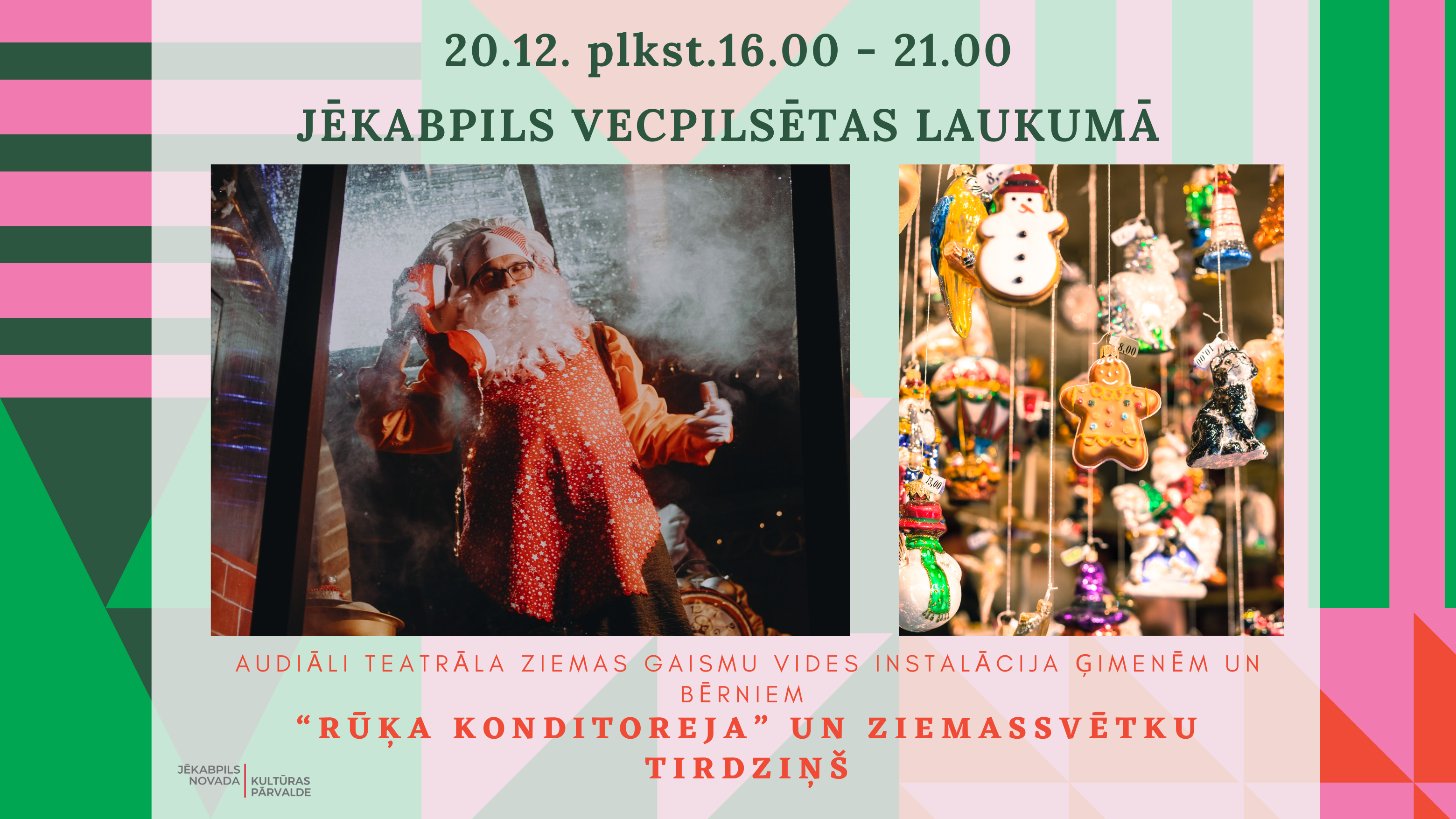 Jēkabpilī notiks Ziemassvētku tirdziņš un audiāli teatrāla ziemas gaismu vides instalācija ģimenēm un bērniem “Rūķa konditoreja”.