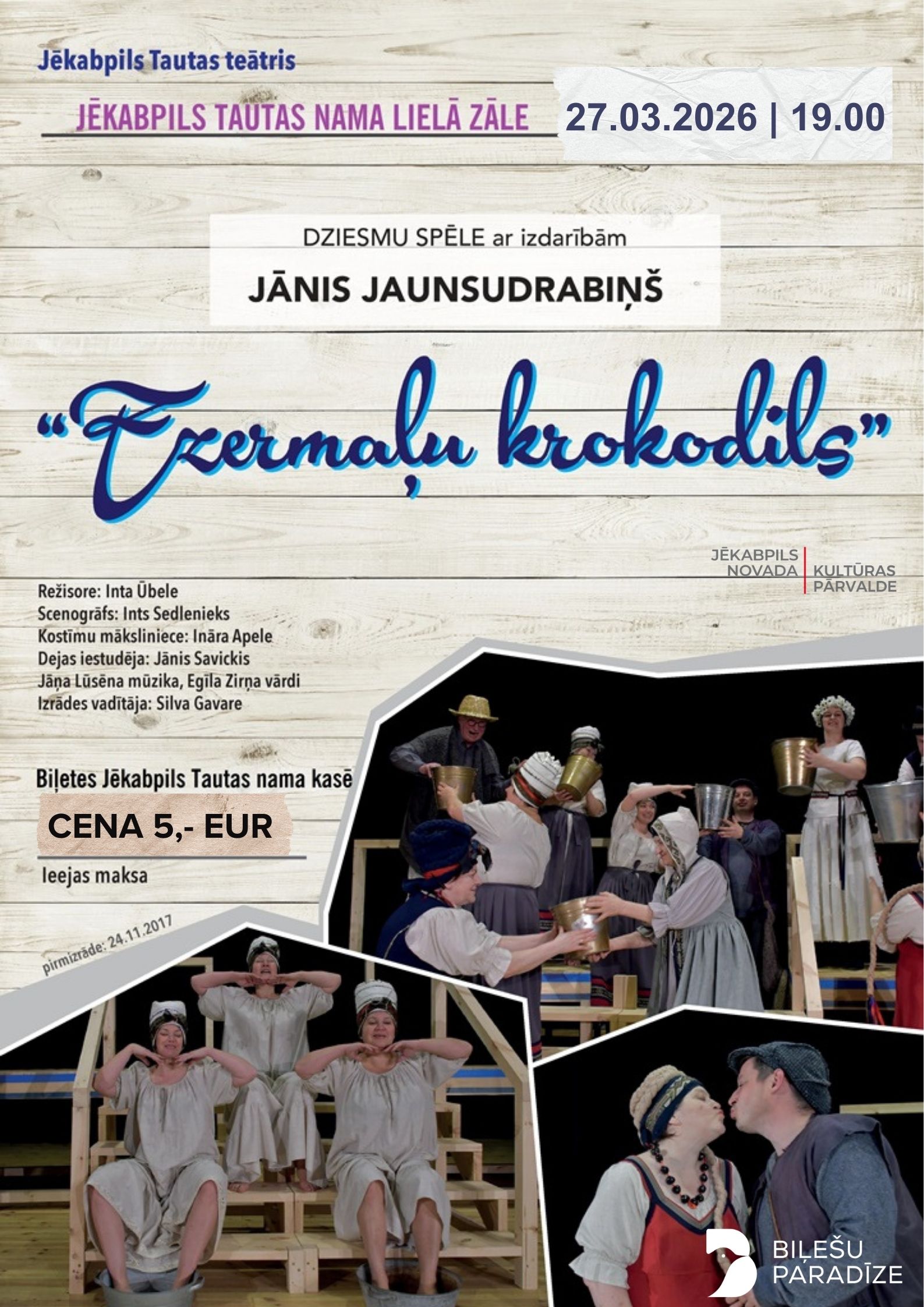 27. martā plkst. 19:00 Jēkabpils Tautas namā Jēkabpils Tautas teātris- Jānis Jaunsudrabiņš “Ezermaļu krokodīls”