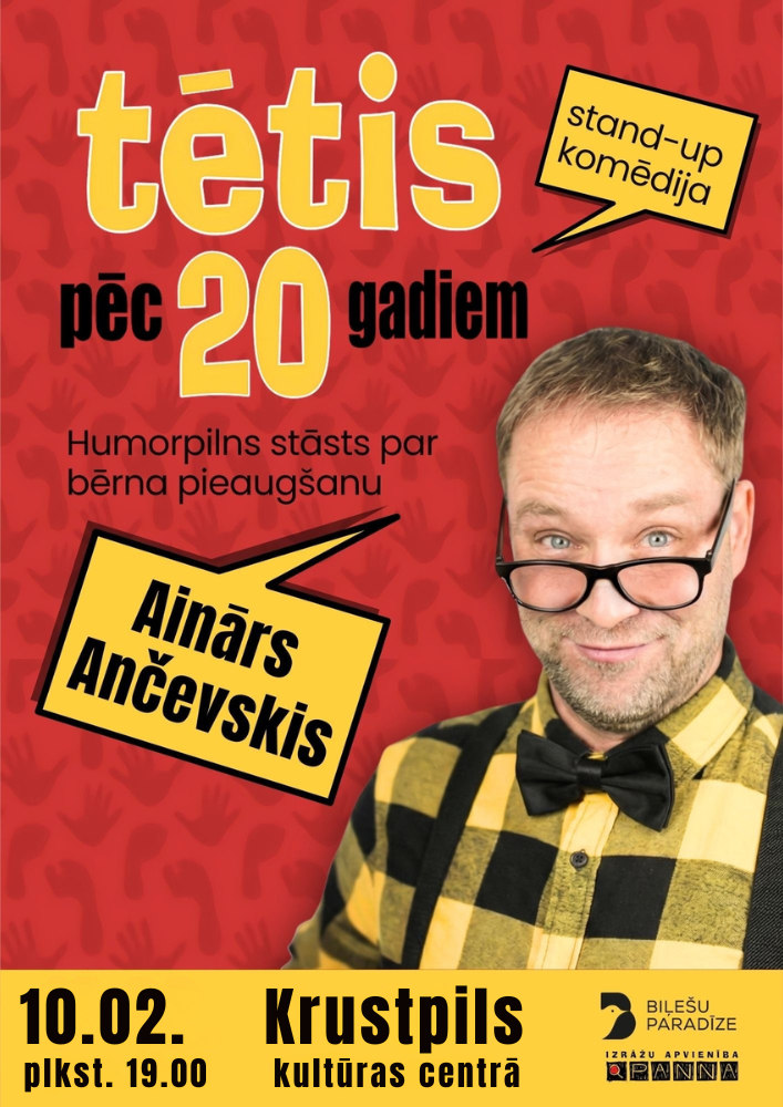 10.02. plkst. 19.00 komēdija “TĒTIS pēc 20 gadiem” ar Aināru Ančevski Krustpils kultūras centrā!