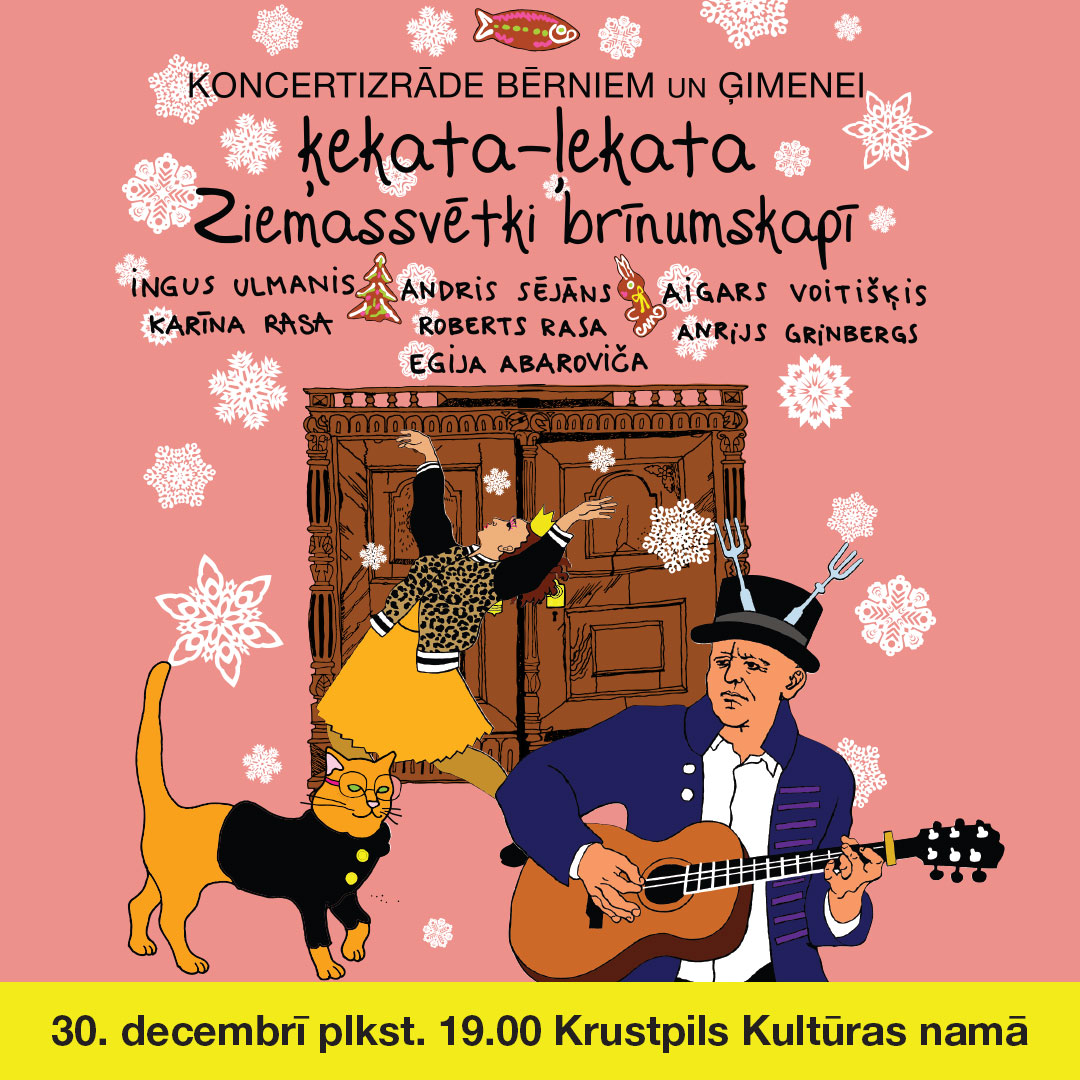 30.12. plkst. 19.00 Krustpils kultūras centrā koncerts bērniem. Ziemassvētki brīnumskapī “ĶEKATA-ĻEKATA”.