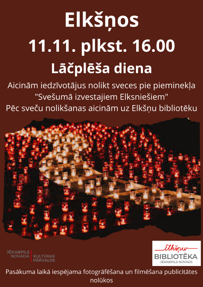11.11. plkst. 16.00 Lāčplēša dienai veltīts pasākums Elkšņos.