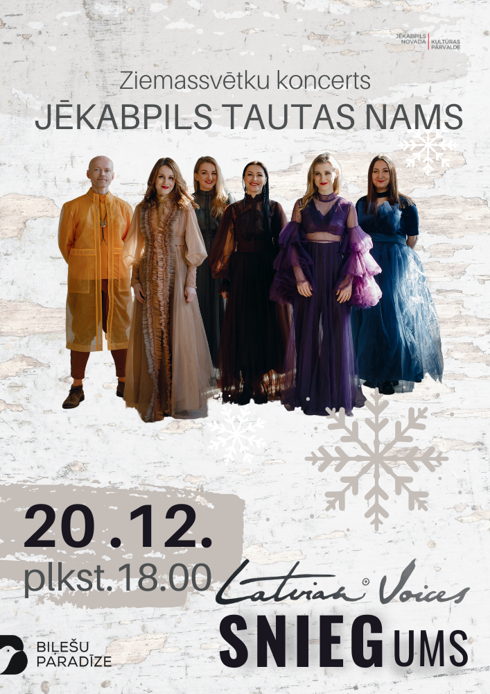 20.12. plkst. 18.00 Jēkabpils Tautas namā Latvian Voices & Kaspars Zemītis Ziemassvētku koncerts “SNIEGums”.