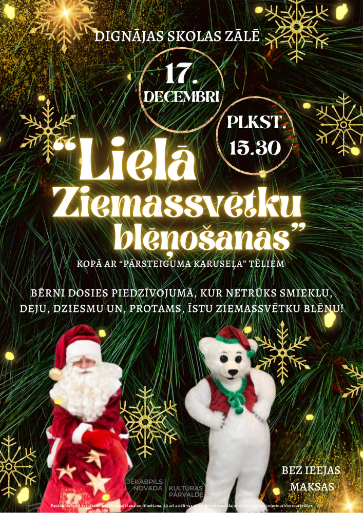 17.12. plkst.15.30 Lielā Ziemassvētku blēņošanās Dignājas pamatskolas zālē!