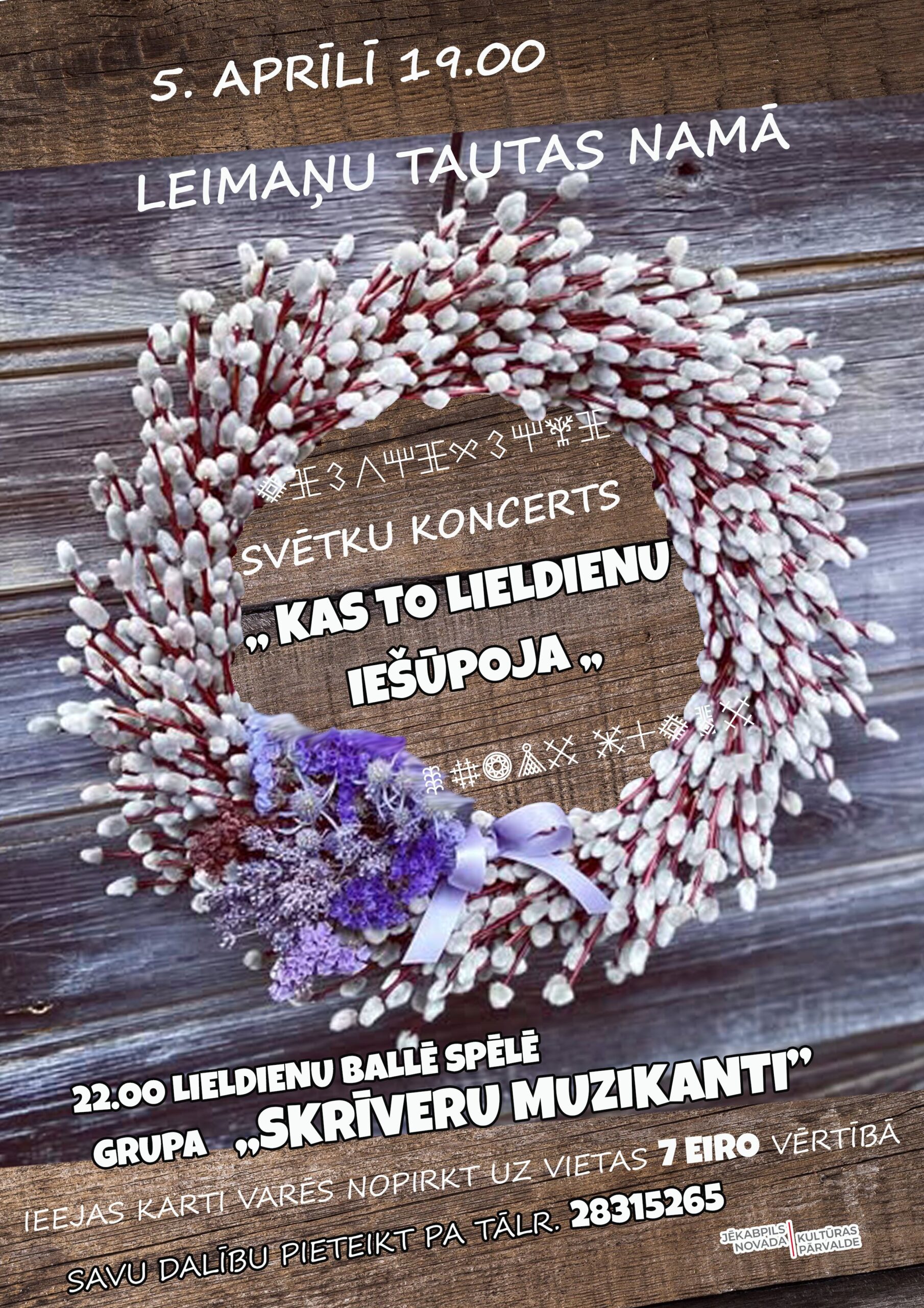 5. aprīlī plkst. 19.00 Leimaņu Tautas namā svētku koncerts „KAS TO LIELDIENU IEŠŪPOJA”.