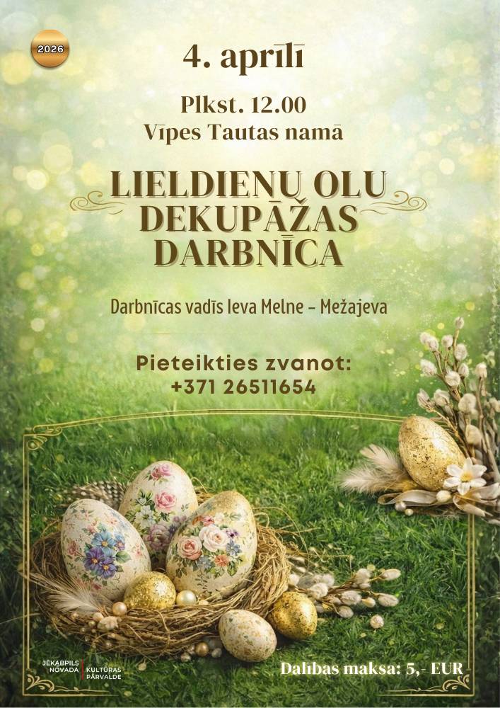 4. aprīlī plkst. 12.00 Vīpes tautas namā