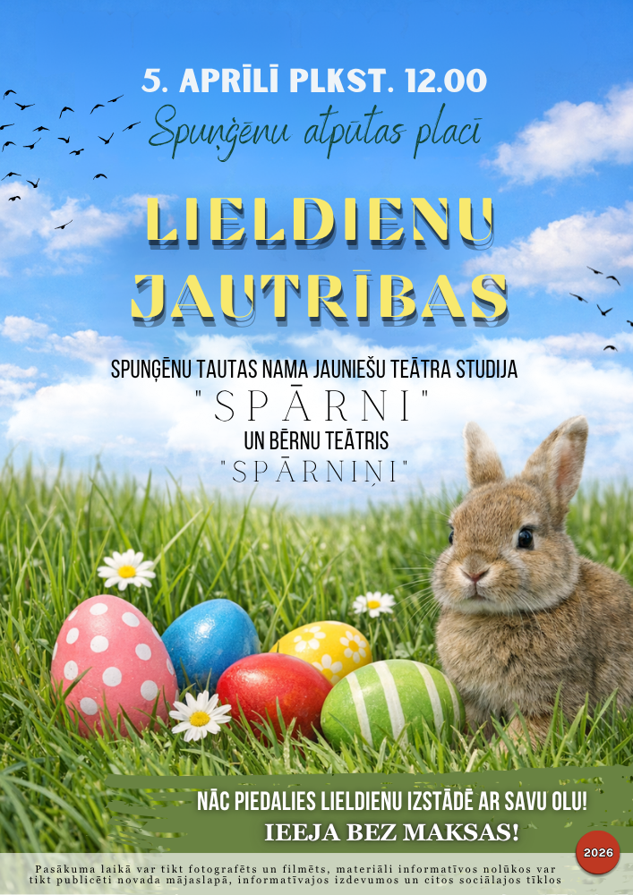 05. aprīlī plkst. 12.00 Spuņģēnu Tautas nama atpūtas laukumā Lieldienu svinēšana