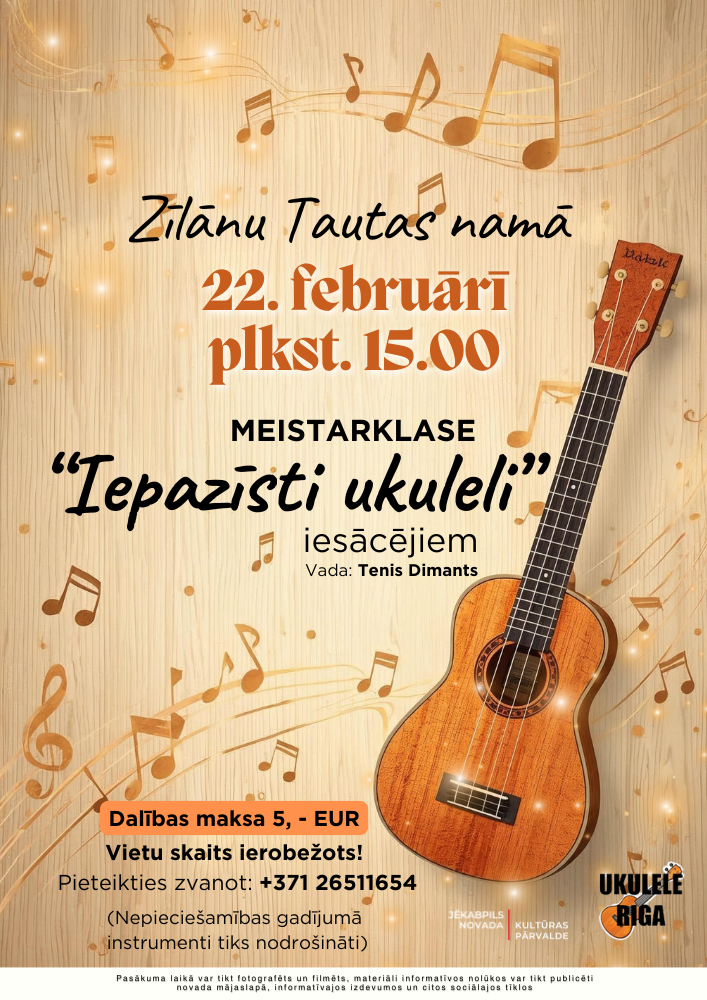 22. februārī plkst. 15.00 Zīlānu Tautas namā meistarklase “Iepazīsti ukuleli”