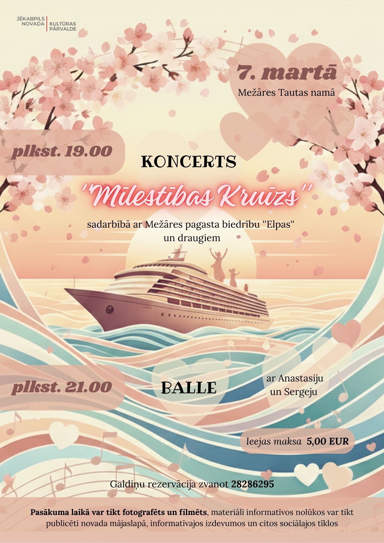 07. martā plkst. 19.00 Mežāres Tautas namā pavasara koncerts ”Pavasara akvarelis”