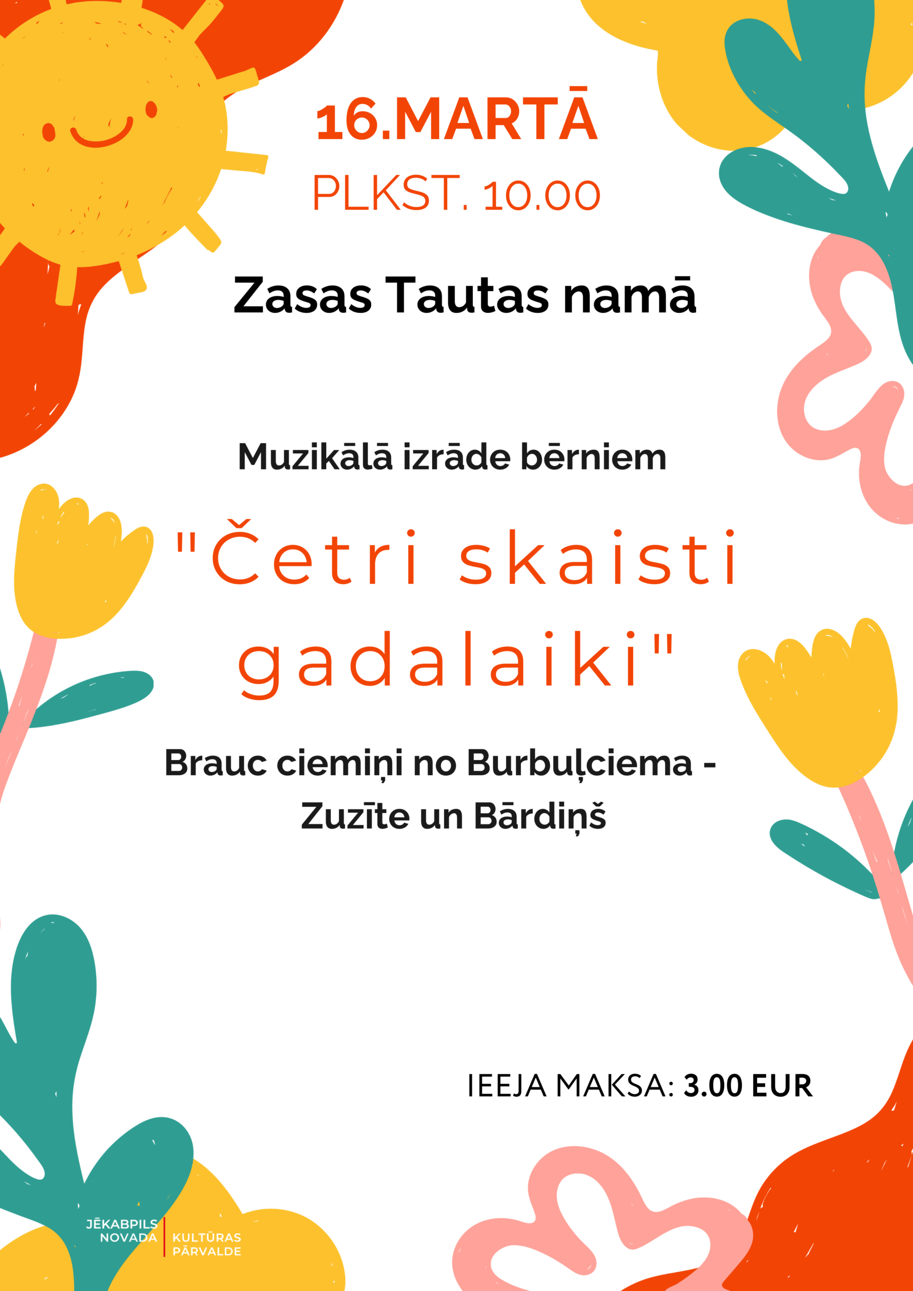 16. martā plkst. 10:00 Zasas Tautas namā muzikāla izrāde bērniem “Četri skaisti gadalaiki”