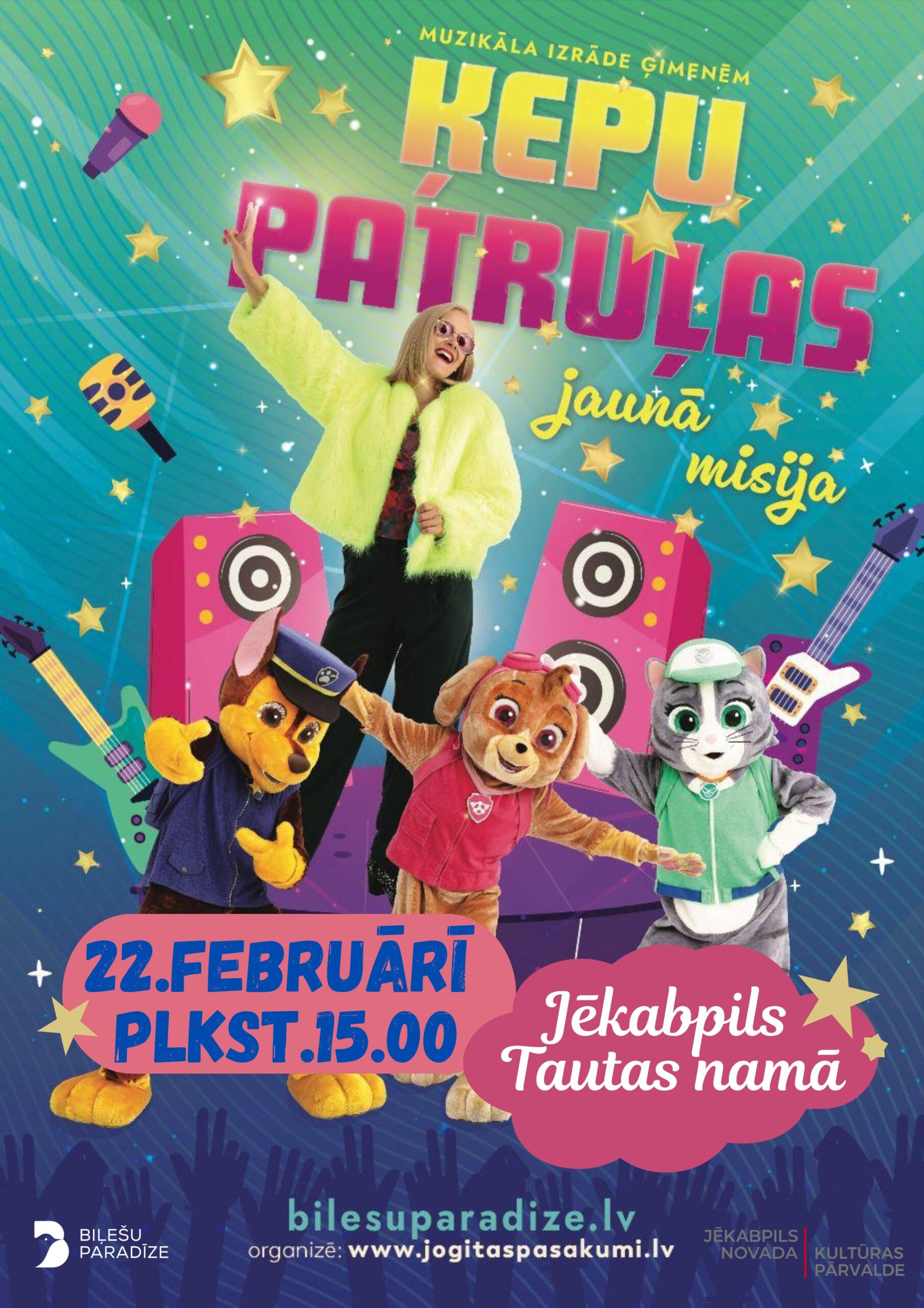 22.02. plkst.15.00 Muzikālā izrāde ģimenēm “Ķepu patruļas jaunā misija”