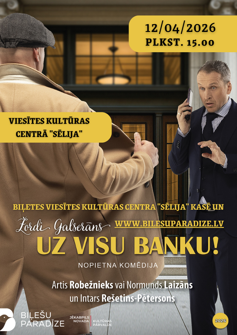 12. aprīlī plkst.15.00 Viesītes Kultūras centrā “Sēlija” nopietna komēdija “UZ VISU BANKU”