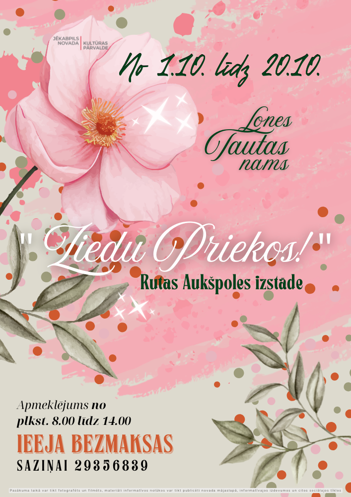 no 1. līdz 20. oktobrim Lones Tautas namā skatāma Rutas Aukšpoles darbu izstāde.