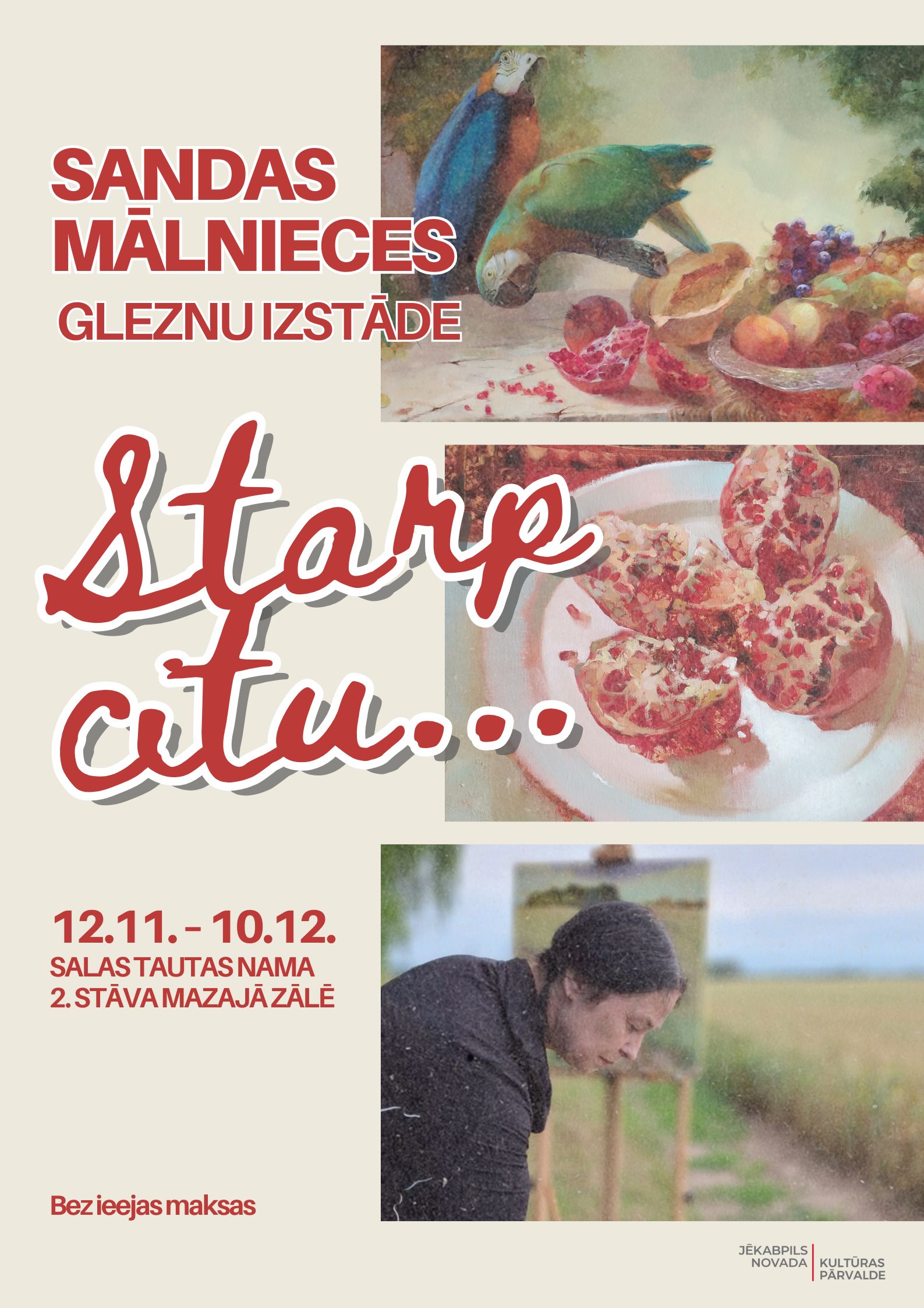 Sandas Mālnieces gleznu izstāde “Starp citu…” 12.11 - 10.12 Salas Tautas nams 12.11.-10.12. Salas Tautas nama Mazjā zālē skatāma Sandas Mālnieces gleznu izstāde “Starp citu…” Bez ieejas maksas Atpakaļ