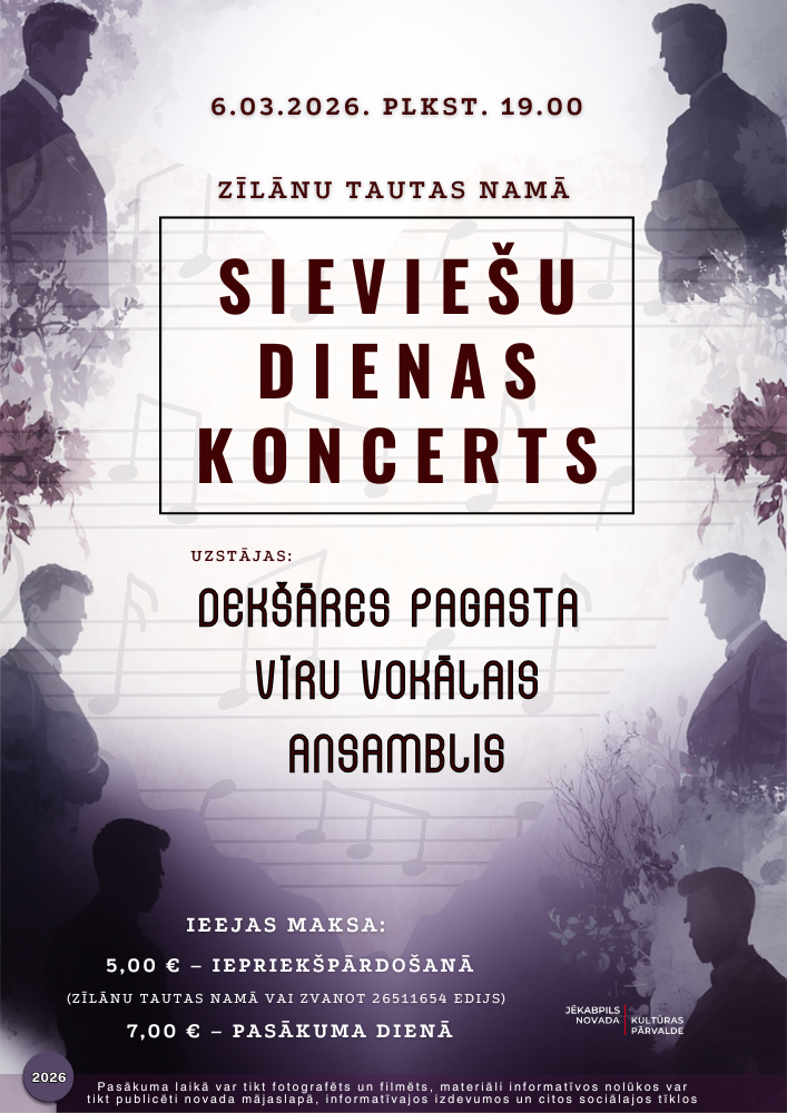 06. martā plkst. 19.00 Zīlānu Tautas namā Sieviešu dienas koncerts