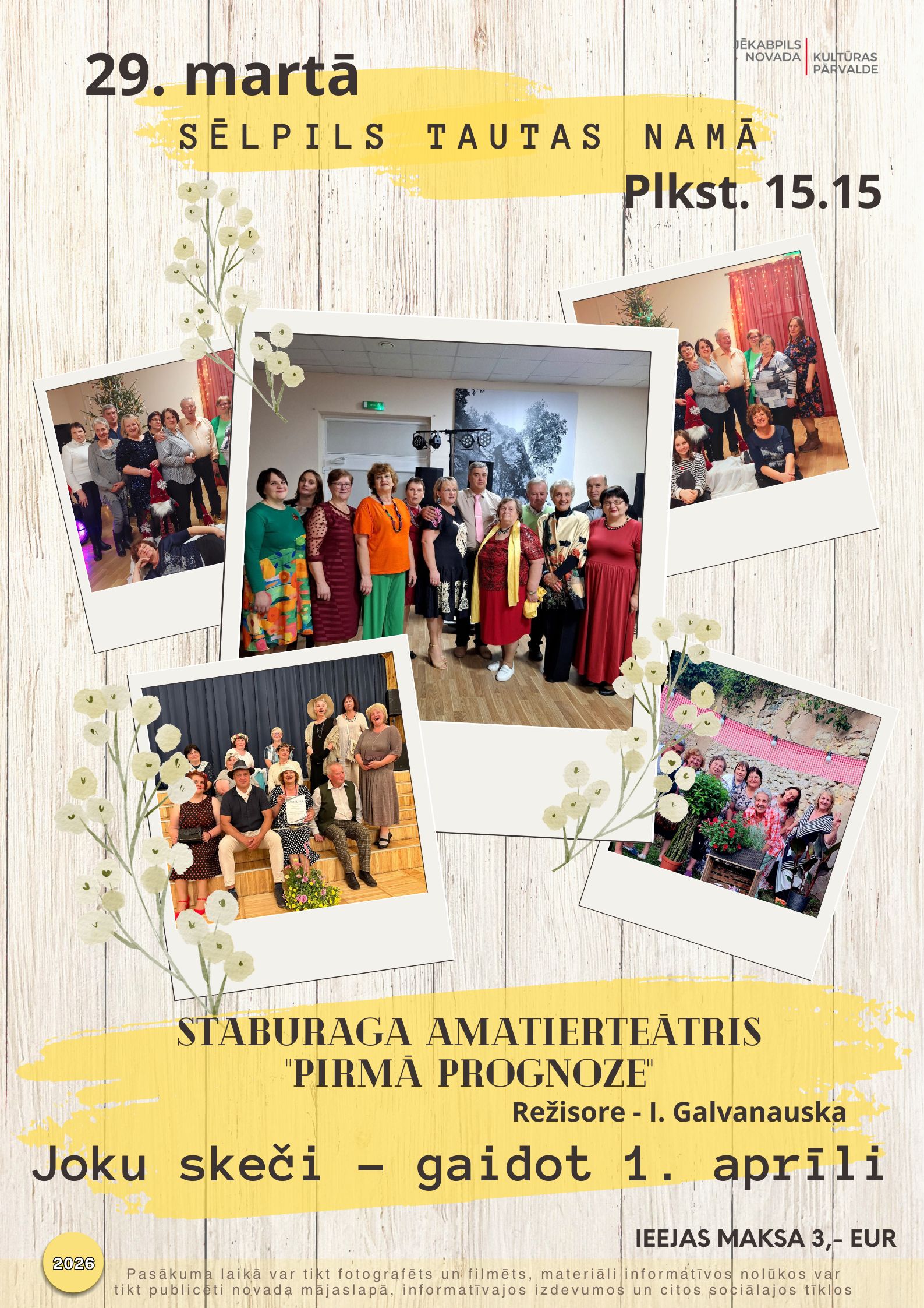 Plkst. 15:15 Staburaga Saieta nama amatierteātris “Pirmā prognoze” režisore Ināra Galvanauska.