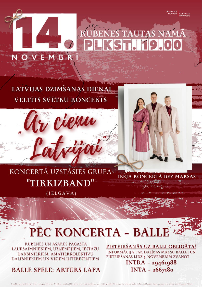 14.11. plkst. 19.00 Svētku koncerts “Ar cieņu Latvijai”.