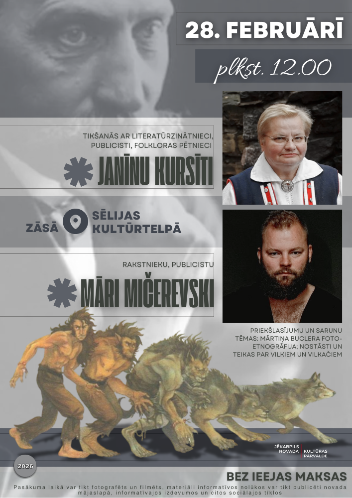 Priekšlasījumu un sarunu tēmas: Mārtiņa Buclera foto-etnogrāfija; Nostāsti un teikas par vilkiem un vilkačiem.