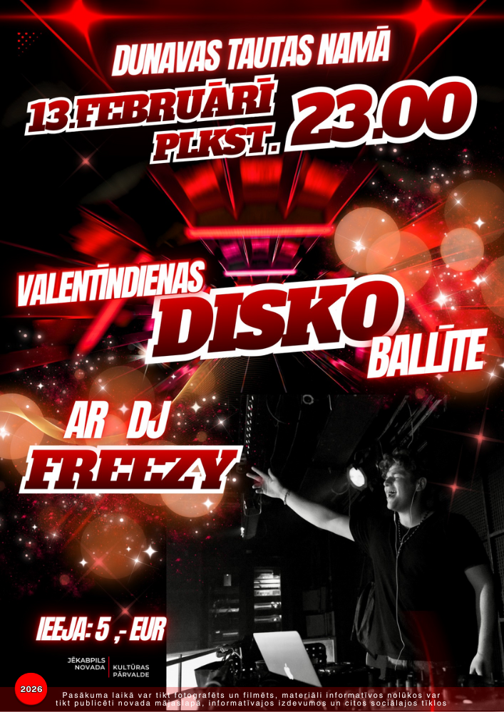 13. februārī plkst.23.00 Valentīndienas disko balle ar DJ Freezy Dunavas Tautas namā