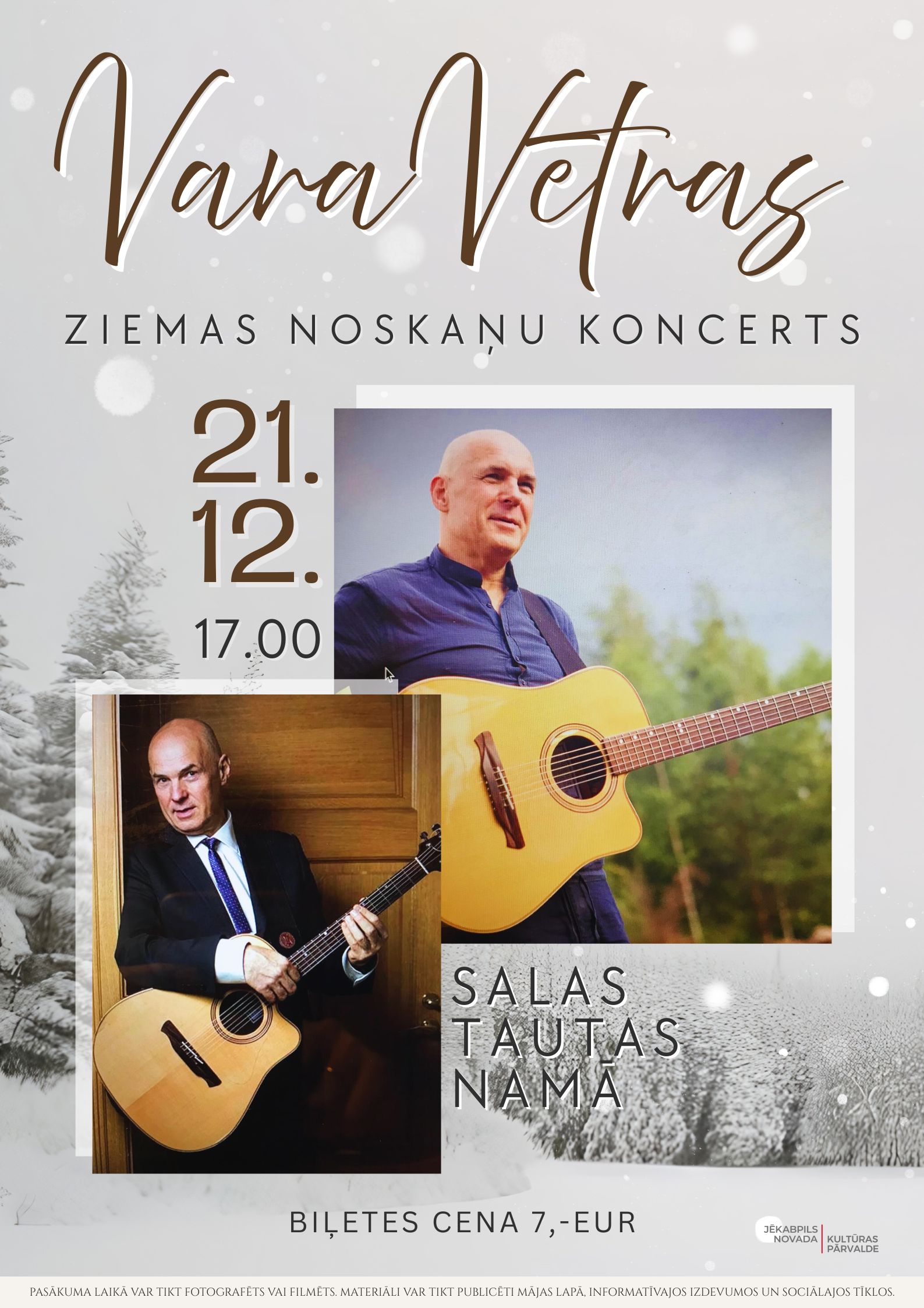21. decembrī plkst. 17.00 Salas Tautas namā aicinām uz aktiera, mūziķa Vara Vētras Ziemas ieskaņu koncertu.