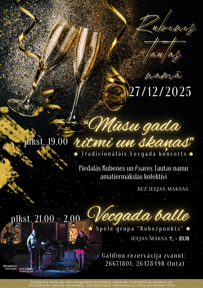 27.12. plkst.19.00 tradicionālais Vecgada koncerts “Mūsu gada ritmi un skaņas” Rubenes Tautas namā.