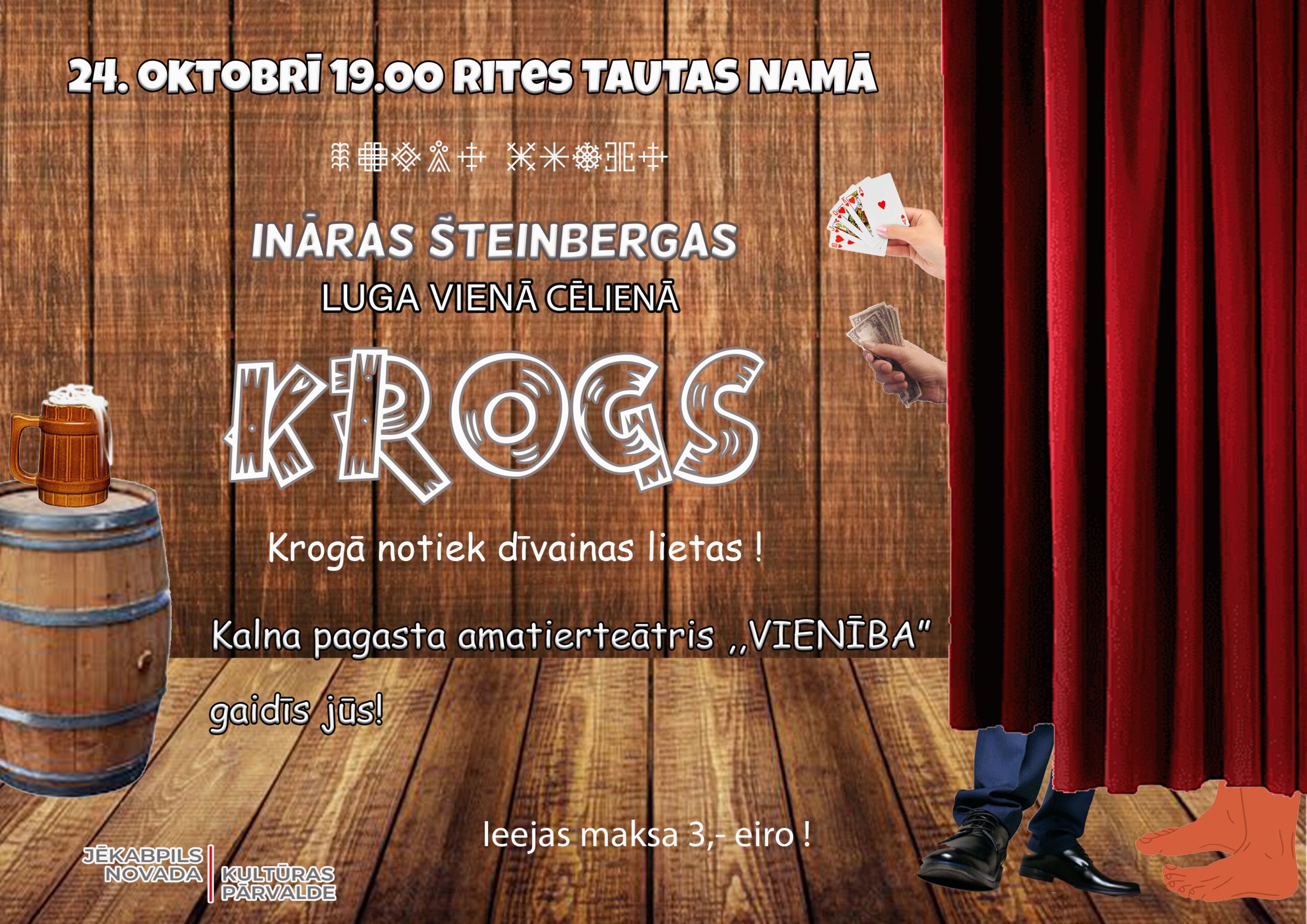 24. oktobrī plkst. 19.00 Rites Tautas namā notiks Kalna pagasta amatierteātra “Vienība” viesizrāde “Krogs”.