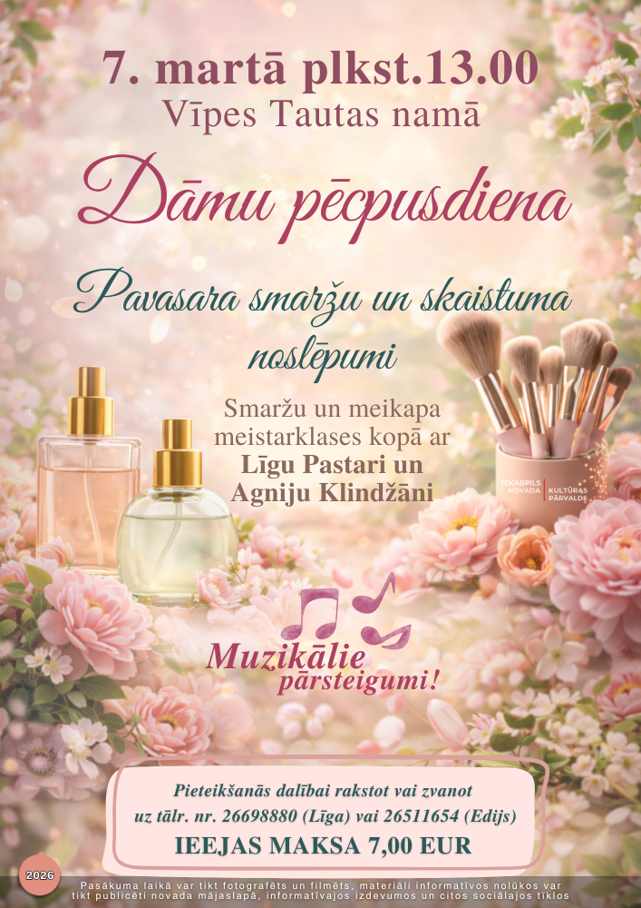 07. martā plkst. 13.00 Vīpes Tautas namā Dāmu pēcpusdiena