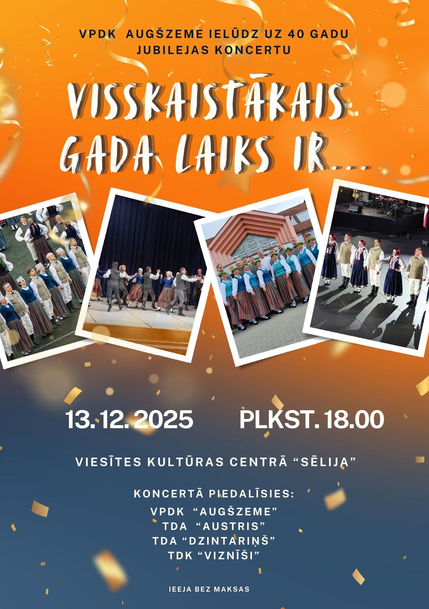 13.12. plkst.18.00 Viesītes kultūras centrā “Sēlija” VPDK AUGŠZEME 40 gadu jubilejas koncerts “Visskaistākais gada laiks ir….”
