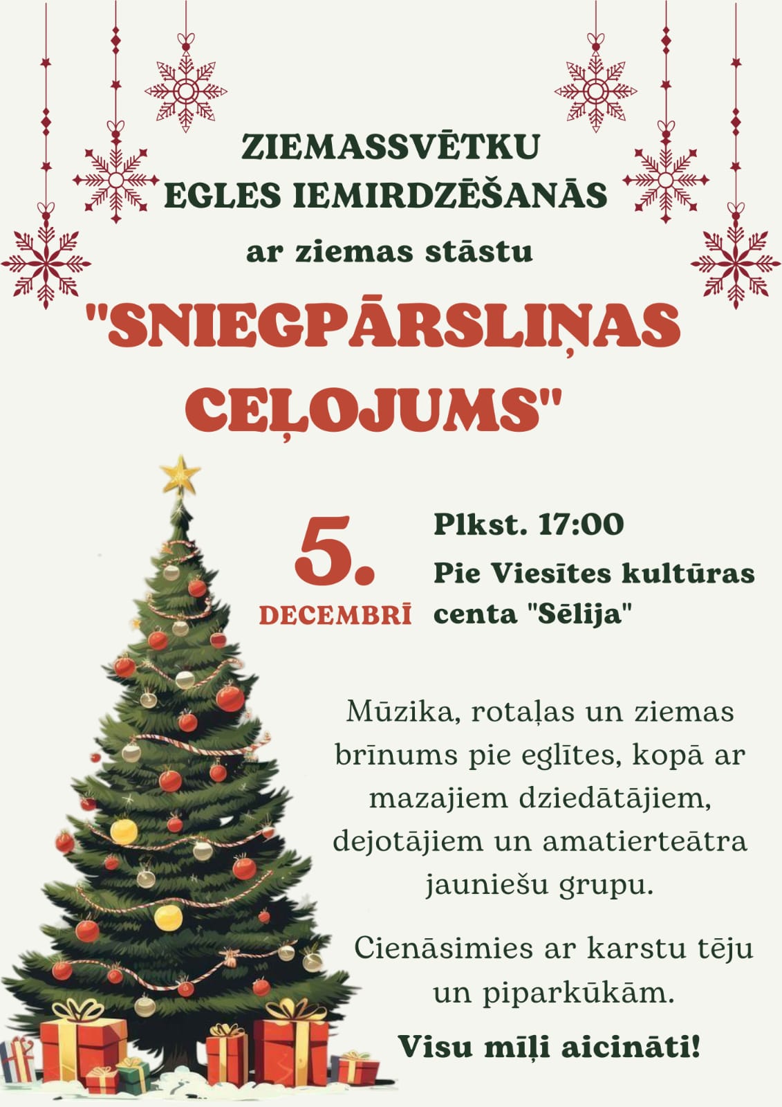 05.12. plkst.17.00 centrālās Ziemassvētku egles iemirdzēšanās pie Viesītes KC SĒLIJA.